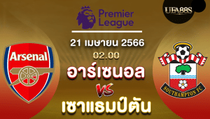 พรีเมียร์ลีก อังกฤษ : อาร์เซน่อลvsเซาธ์แฮมป์ตัน 21 เมษายน 2566